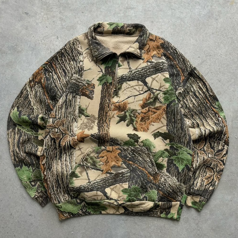Camouflage Print Half Zip Plush Sweatshirt
